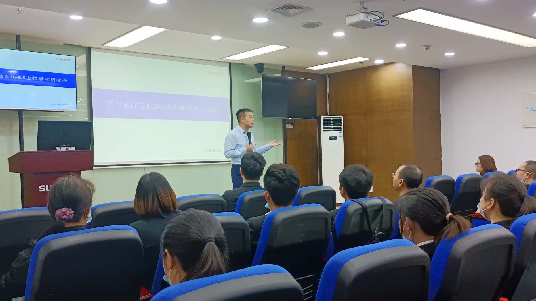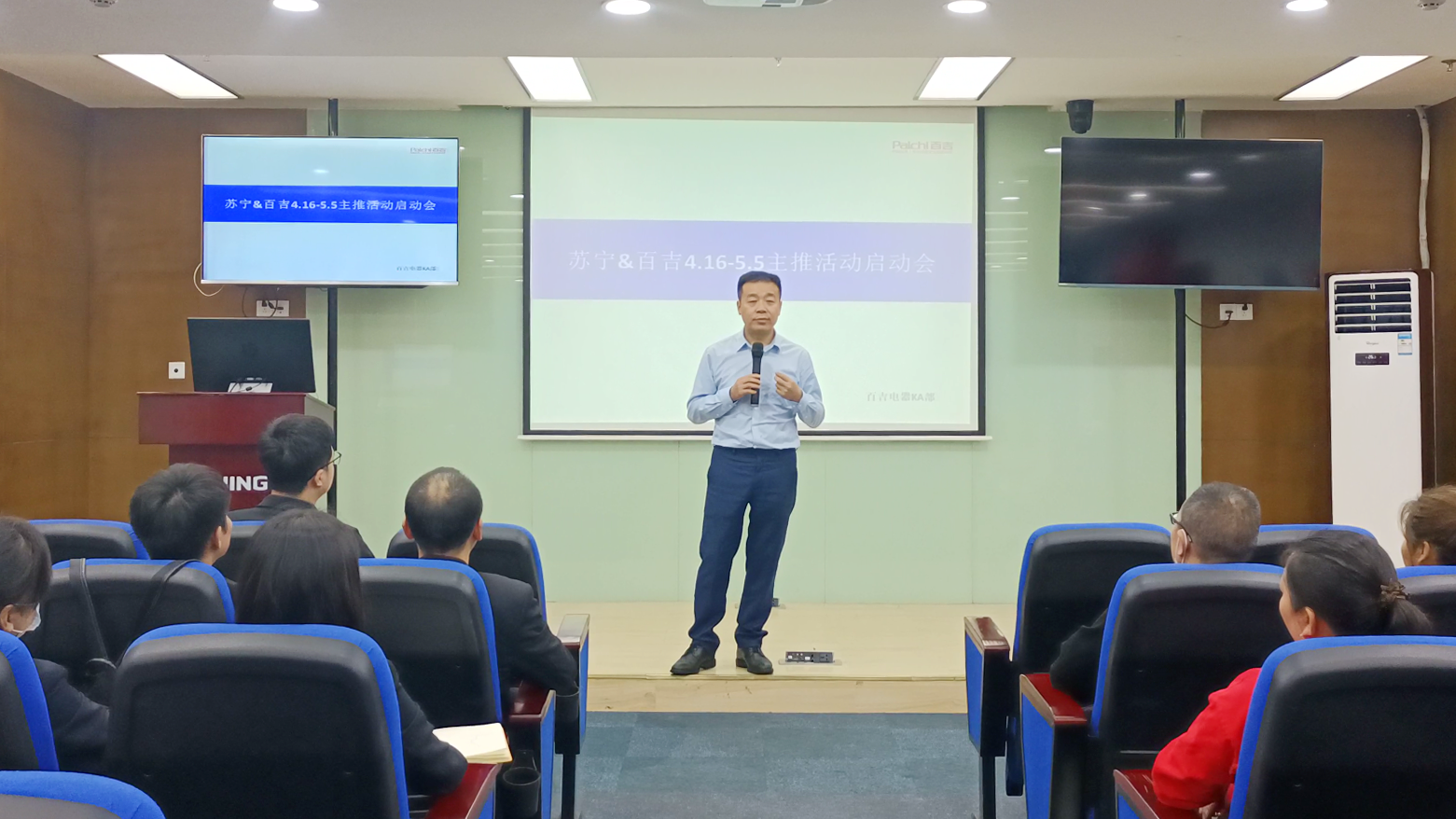 蘇寧&百吉4.16-5.5主推活動啟動會在解放碑蘇寧易購營銷中心召開。蘇寧重慶大區總經理-劉其志,重慶蘇寧廚衛經營部采銷總監-郭騏菘,重慶百吉廚電副總經理-童強,重慶百吉廚電KA銷售總監-鄧躍參與了此次會議并發表講話,同時參會的還有蘇寧易購銷售督導以及百吉廚電銷售。會議重點講解蘇寧&百吉聯合主推活動任務,為迎接即將到來的五一小長假,百吉特推出大型促銷活動,此次會議明確了兩方銷售任務,同時為蘇寧和百吉形成密切的合作關系發展定調。