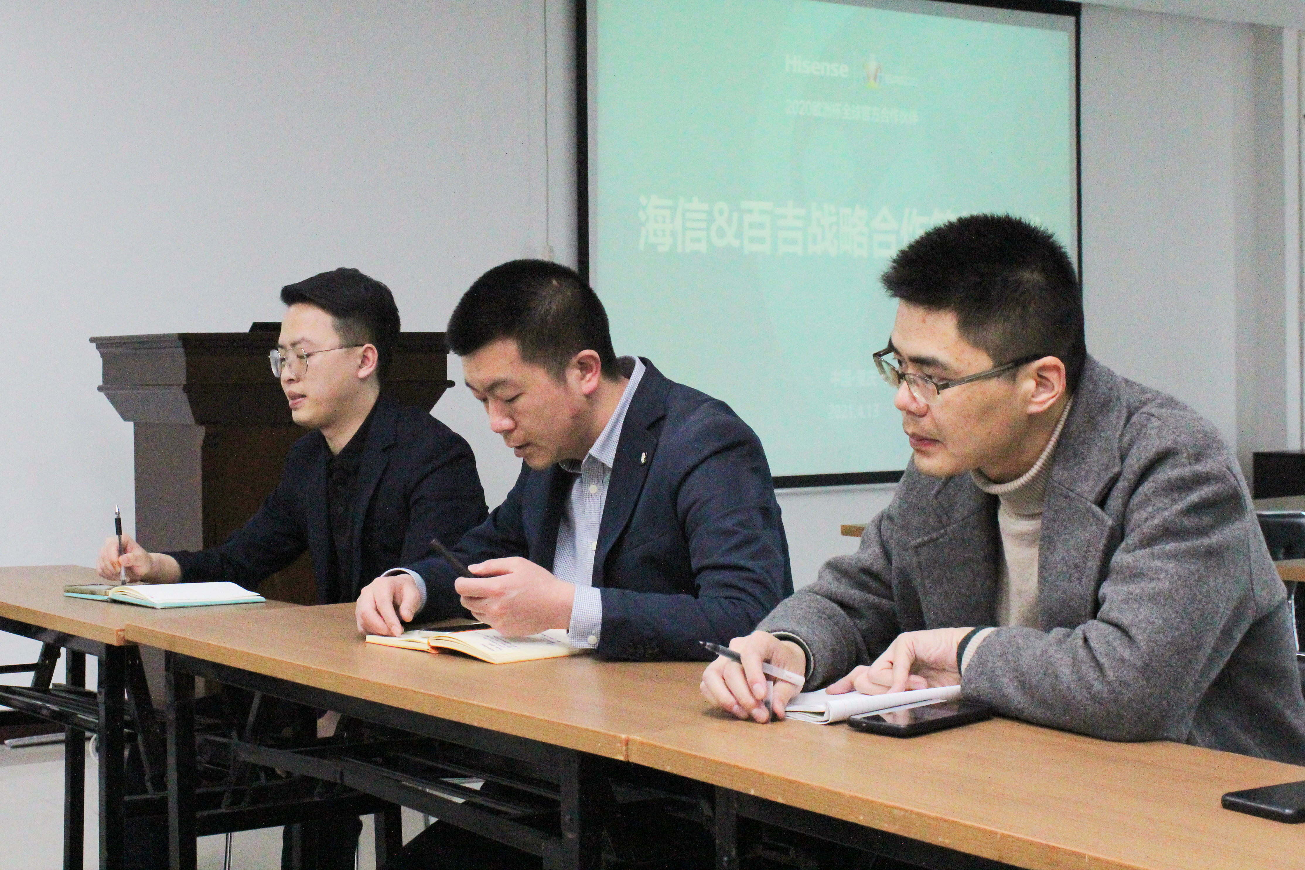 2021年4月13日,在海信集團重慶營銷中心,百吉廚電與海信進行了2021年KA連鎖合作的交流,雙方一致決定建立全面戰略合作伙伴關系。