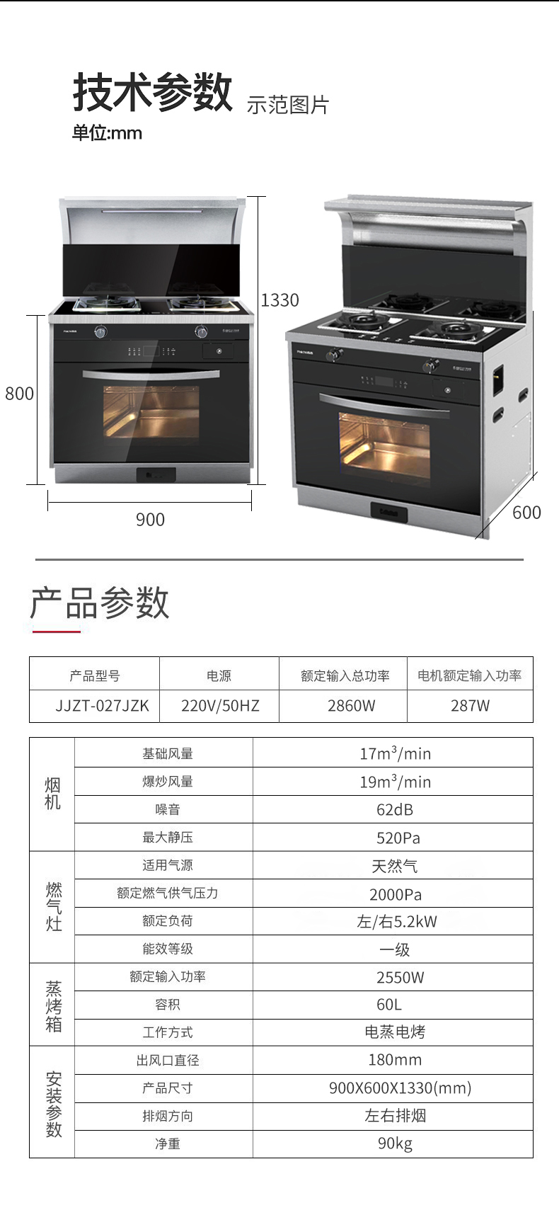 1級(jí)能效 蒸烤箱一體集成灶