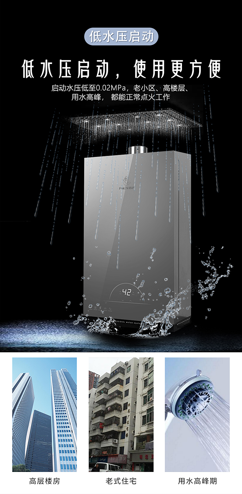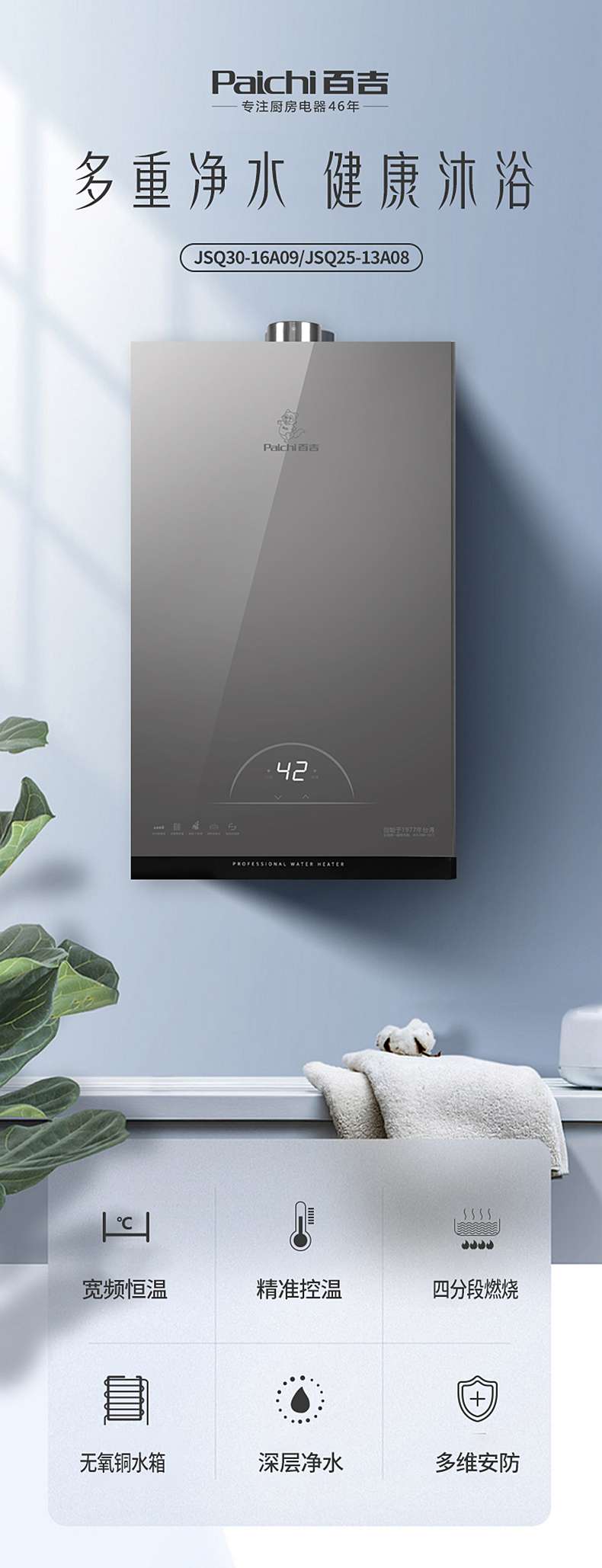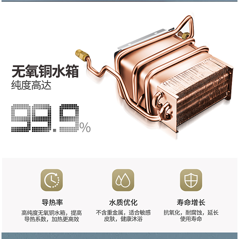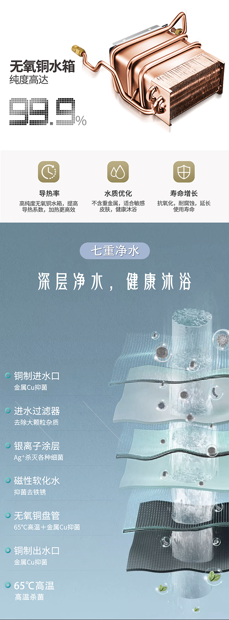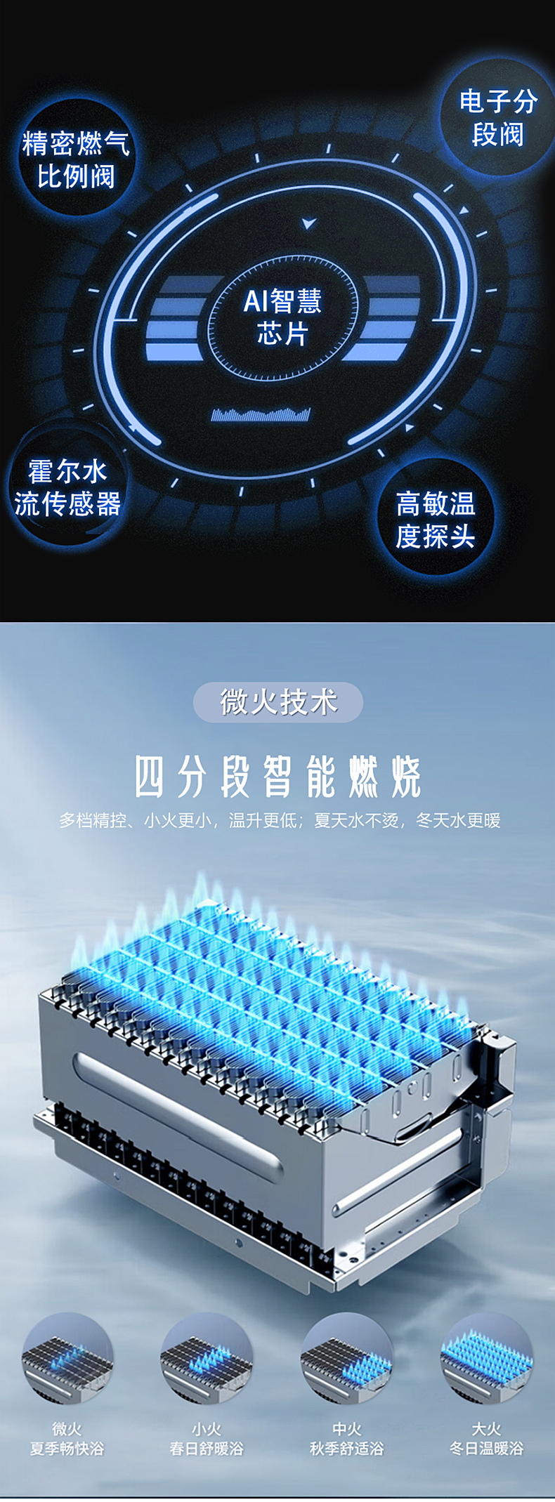 寬頻恒溫 精準(zhǔn)控溫 四分段燃燒 無氧銅水箱 深層凈水 多維安防