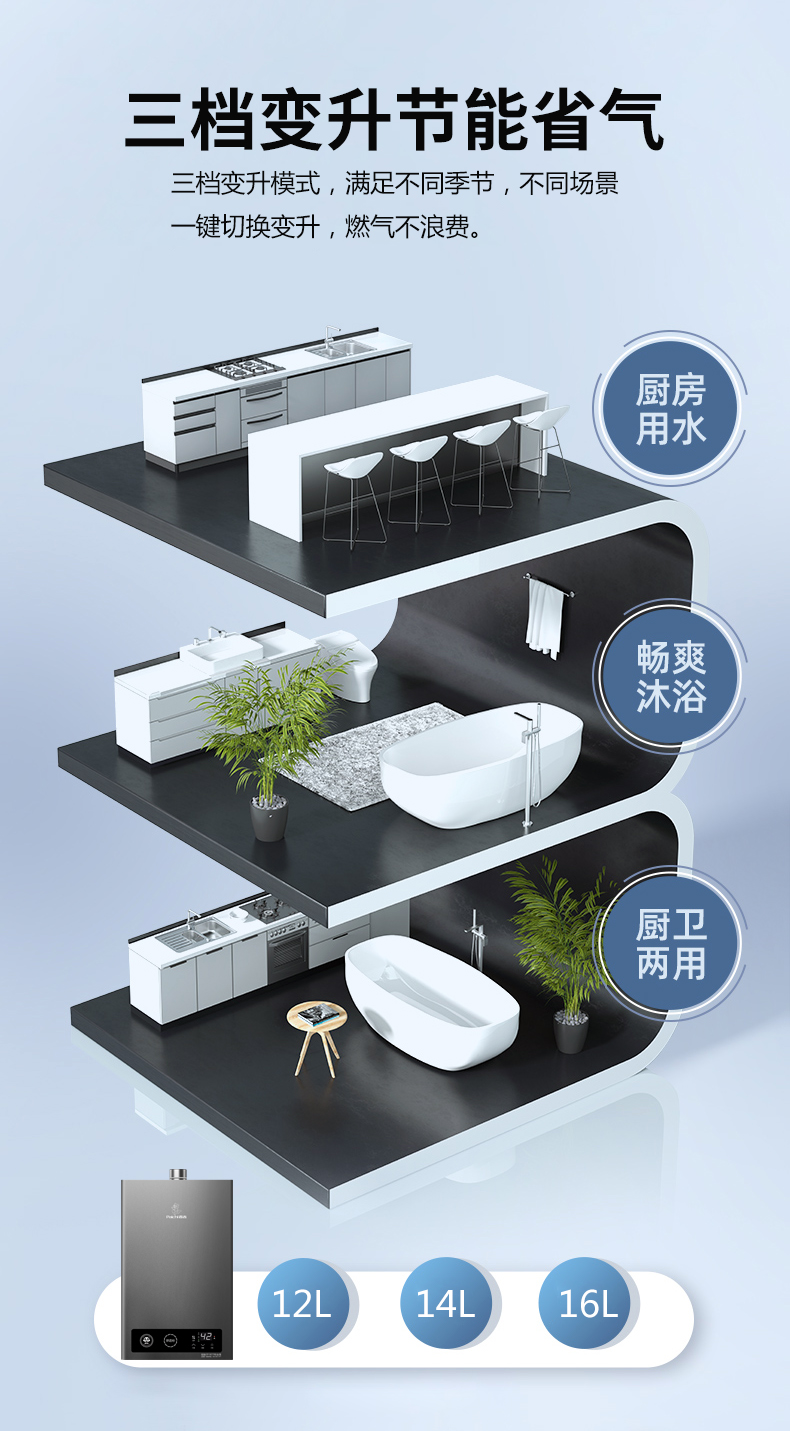 三檔變升,16升智能恒溫,無氧銅材質(zhì)水箱