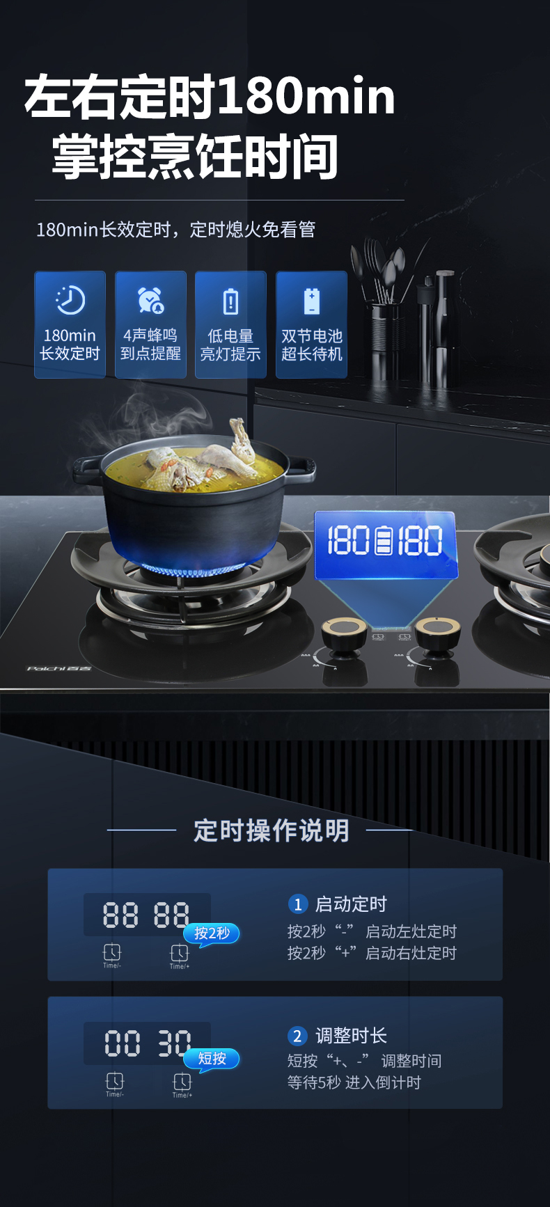 5.2kW聚能大火力,雙邊電子定時功能